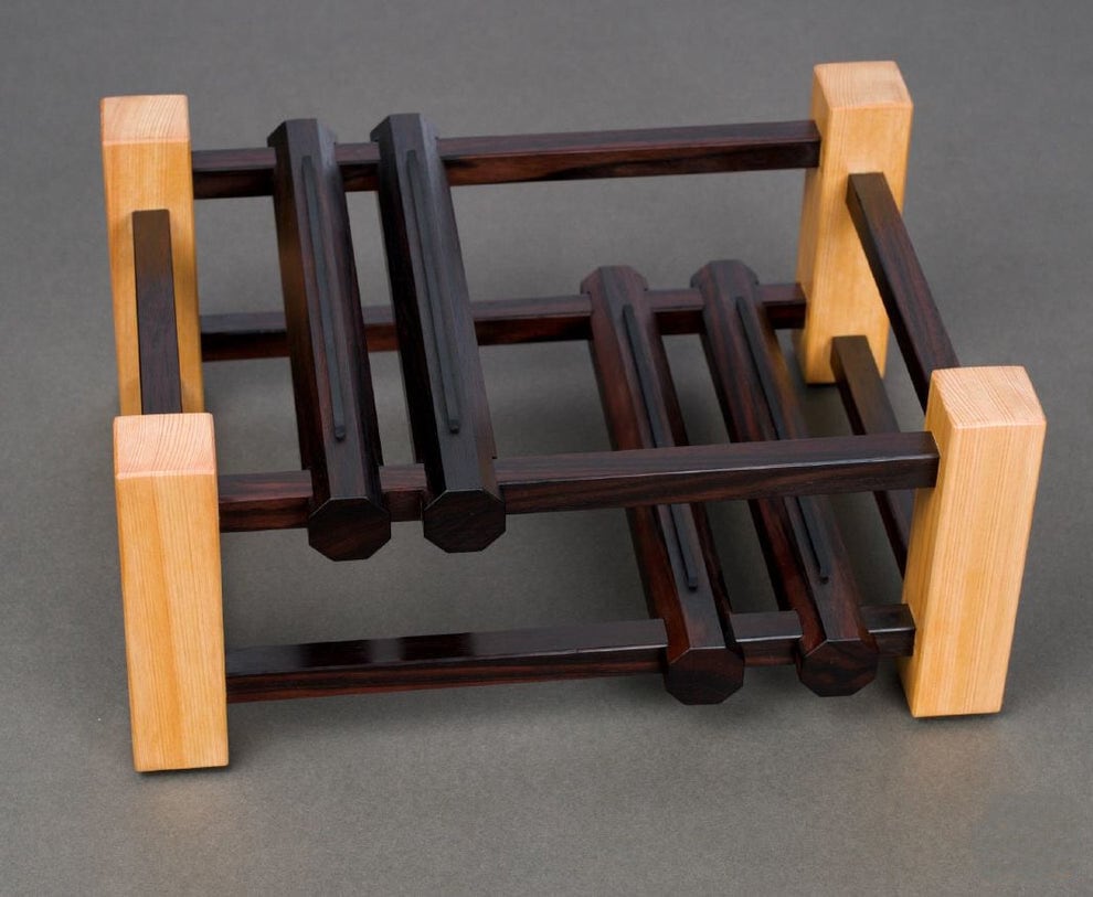 高級感あふれる黒檀のダブルレベルナイフスタンドは、キッチンの美しさを引き立てる実用的なアイテムです。シンプルながらも洗練されたデザインで、どんなインテリアにも調和します。